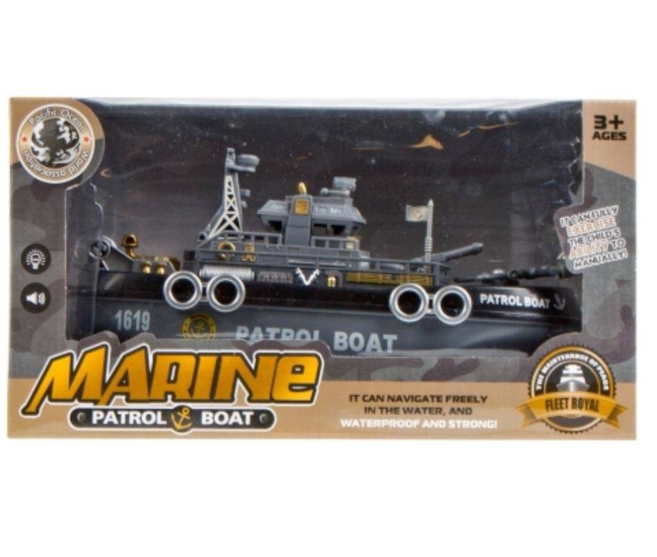 Łodź patrolująca morza i jeziora to prawdziwa gratka dla wszystkich fanów morskich przygód. Łódź MEGA CREATIVE zaspokoi potrzeby najbardziej wymagających dzieci Pojazd posiada efekty świetlne oraz dźwiękowe a także możliwość pryskania wodą z działa. Produkt w całości wykonany z plastiku. Przeznaczony dla dzieci w wieku 3 . Wymiary opakowania dł. x wys. x gł. cm 24x13x9.