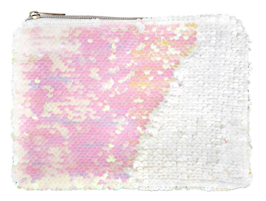 Modny piórnik saszetka cekinowa o wymiarach 22x15 cm.