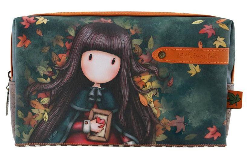 Fantastycznie zaprojektowana kosmetyczka ozdobiona stylowym wizerunkiem Dziewczynki Gorjuss na tle jesiennych liści. Nadaje się do przechowywania niemal wszystkiego : od rzeczy niezbędnych w podróży, poprzez zestawy do makijażu. Stylowy wzór utrzymany w pięknej żywej palecie kolorów sprawia, że może być doskonałym prezentem. Zapinana na suwak. Wnętrze wyściełane podszewką z logiem Santoro.