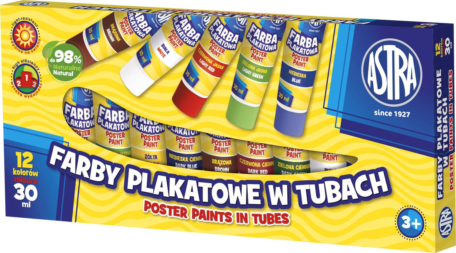 Farby plakatowe w tubach Astra 12 kolorów 30 ml