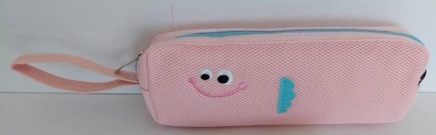 Uroczy piórnik z naszywką chmurki oraz przyjaznym uśmiechem.