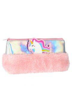 Saszetka w różowym oraz holograficznym kolorze z pluszowego materiału z grafiką Jednorożca.