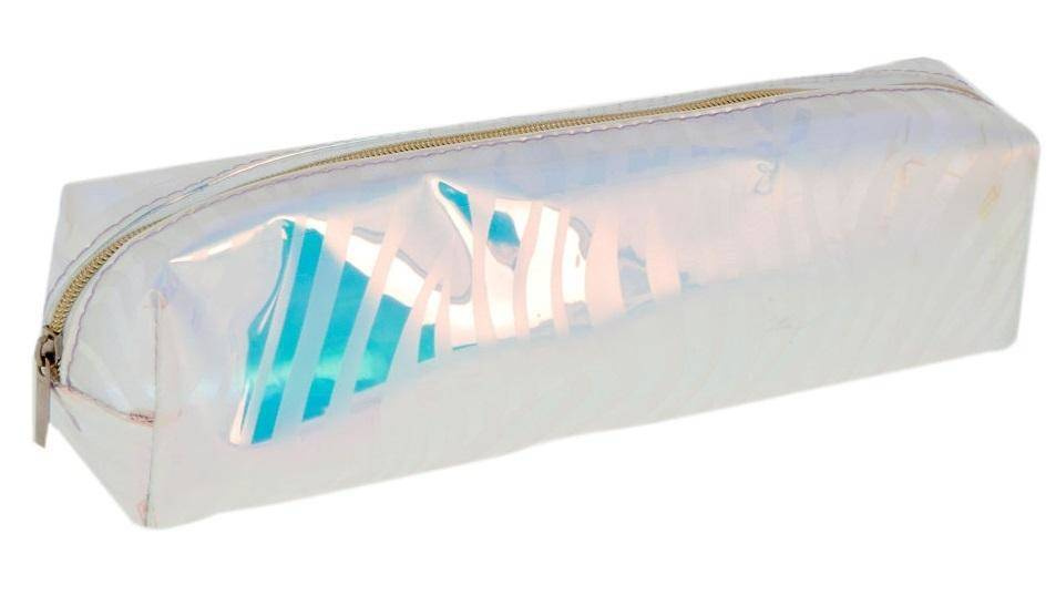 Piórnik w kształcie tuby z zamkiem błyskawicznym. Z modnym holograficznym efektem. Pomieści niezbędne artykuły piśmiennicze i nie zajmie dużo miejsca w plecaku. Wymiary: 20,5 x 5 x 5,5 cm