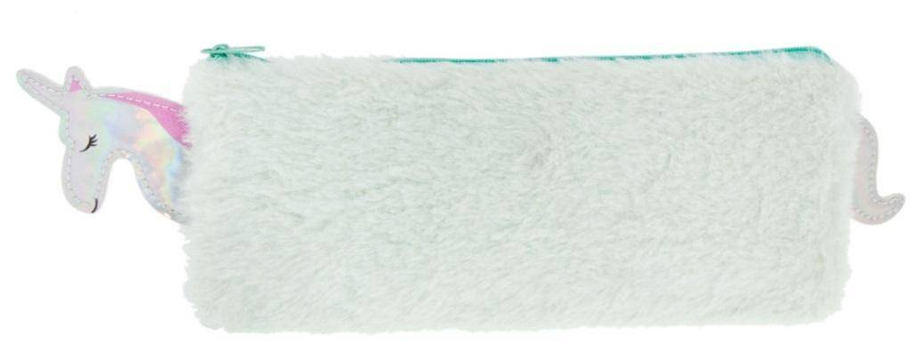 Pluszowy piórnik w kształcie saszetki z zamkiem błyskawicznym. Pomieści niezbędne artykuły piśmiennicze i nie zajmie dużo miejsca w plecaku. Wymiary: 22 x 9 cm
