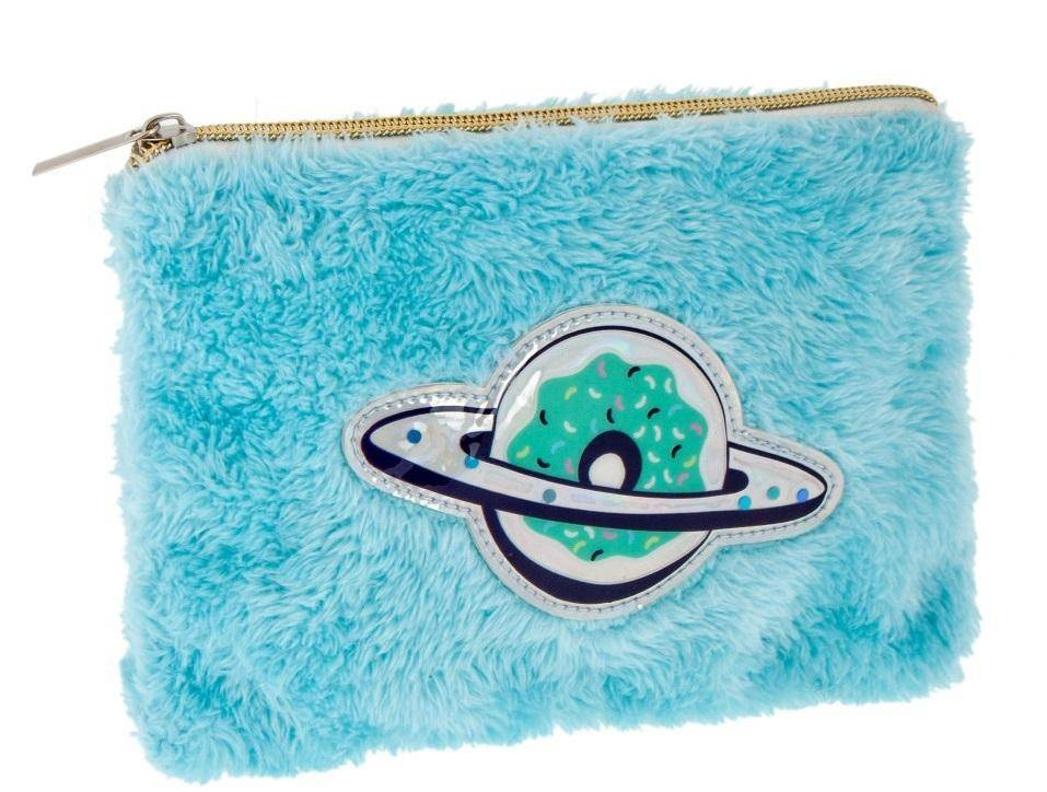 Pluszowy piórnik w kształcie saszetki z zamkiem błyskawicznym. Pomieści niezbędne artykuły piśmiennicze i nie zajmie dużo miejsca w plecaku. Wymiary: 20 x 14 cm