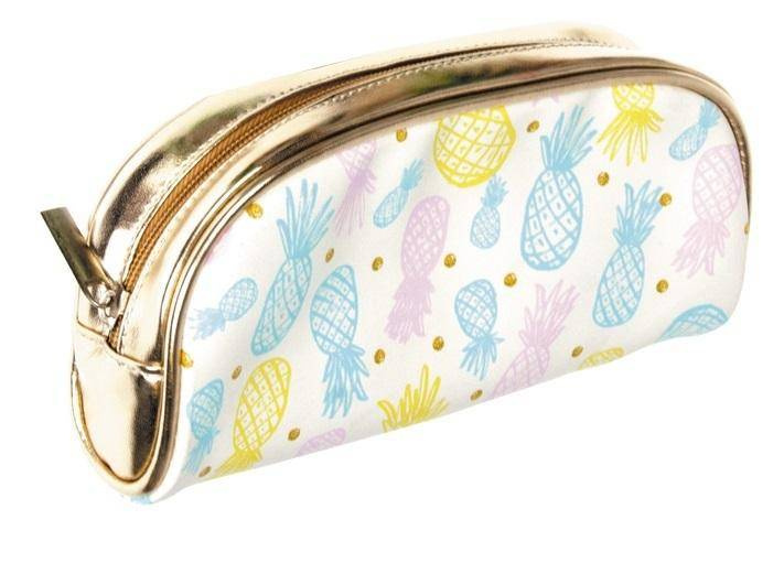 Piórnik z zamkiem błyskawicznym. Pomieści niezbędne artykuły piśmiennicze i nie zajmie dużo miejsca w plecaku. Dostępny w dwóch wzorach - w liście i w ananasy. Wymiary: 20 x 4,5 x 10 cm