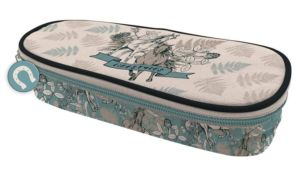 Owalny piórnik szkolny z klapką to niezbędny przedmiot uczniów. Wewnątrz na klapce znajdują się gumowe uchyty na przybory do pisania oraz skrzydło, na którym jest kieszonka z siateczki zamykana zamkiem błyskwicznym i kolejne gumowe uchwyty. Komora główna jest pojemna, korpus dodatkowo usztywniany. Na piórniku znajduje się motyw z serii Nice&Pretty
