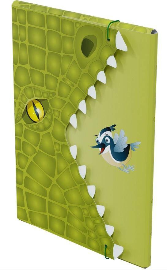 Krokodyl jest bardzo silnym zwierzęciem, jest drapieżnikiem. Mogłoby się wydawać, że ten malutki ptaszek wcale nie ma z nim szans. Ale czy na pewno? To, że ktoś jest wielki nie oznacza, że wszystko może, że niczego się nie boi, że sprosta każdemu zadaniu. A gdyby tak spojrzeć trochę bardziej metaforycznie na teczkę. Ja to ten mały ptaszek, krokodyl to wyzwanie, czyli coś co muszę zrobić, ale strasznie mnie to przeraża. Zupełnie nie wiem jak mam się zabrać do tego tematu. Bo co ja mogę? Jestem tylko małym, nic nie potrafiącym ptaszkiem! A teraz spójrzmy na to inaczej. Krokodyl, ten wielki zły zwierzak ma szeroko otwarta paszczę z tymi ogromnymi wielkimi zębami, a ptaszek jest taki uśmiechnięty jakby właśnie wygrał na loterii! Czysta abstrakcja? A może jednak coś w tym jest? Są takie chwile w życiu, gdy myślimy że już nie damy rady, że nie możemy niczego osiągnąć, że do niczego się nie nadajemy. Każdy może mieć chwilę słabości. To zupełnie naturalne. Ale życie to nie bajka, to ciągłe wyzwania. To jak je przeżyjemy zależy od nas, od naszego nastawienia. Może zamiast mówić: to się nie uda, lepiej pomyśleć: dam radę, a przynajmniej spróbuję!. Oczywiście nie jest to łatwe zadanie, ale jeżeli coś jest trudne do osiągnięcia, to później kiedy się już z tym uporamy, nasza satysfakcja jest o wiele większa! Zamiast od razu dawać za wygraną, warto jest przynajmniej spróbować uporać się z danym zadaniem czy problemem. Niech ten uśmiechnięty ptaszek będzie motywacją do działania! Niech ta teczka pomoże uporządkować ważne dokumenty. Niech ten krokodyl ucieka w siną dal i zabierze ze sobą zmartwienia. Jedna teczka, niby tylko teczka, a jednak tak bardzo może dać do myślenia i być może zachęcić do działania! Powodzenia!