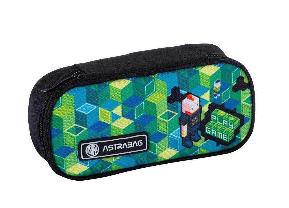 "Saszetka piórnik Astrabag z serii Play Game została zaprojektowana z myślą o młodych fanach gamingu. Zielono pikselowy motyw graficzny nawiązujący do najpopularniejszych współczesnych gier skradnie serce każdego ucznia. Saszetka jest kompaktowa i niezwykle pojemna, dzięki czemu sprosta wymaganiom każdego ucznia. Dodatkowo dzięki podwójnemu wewnętrznemu organizerowi pomieści wszystkie niezbędne przybory.
