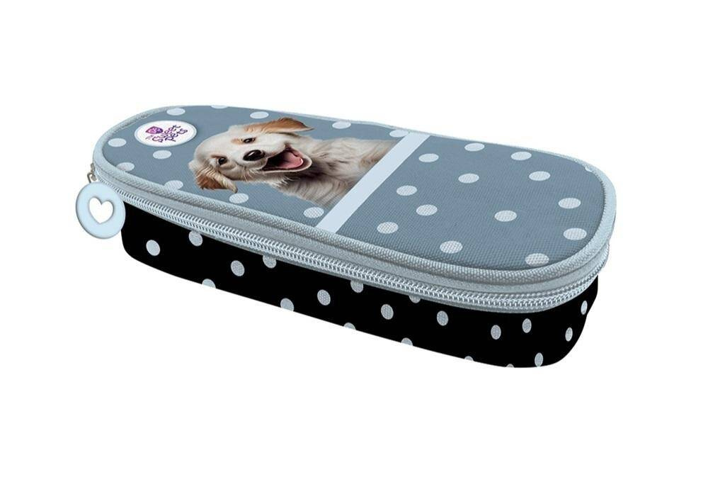 Owalny piórnik szkolny z klapką to niezbędny przedmiot uczniów. Wewnątrz na klapce znajdują się gumowe uchwyty na przybory do pisania oraz skrzydło, na którym jest kieszonka z siateczki zamykana zamkiem błyskawicznym i kolejne gumowe uchwyty. Komora główna jest pojemna, korpus dodatkowo usztywniany. Na piórniku znajduje się motyw z serii The Sweet Pets z psem. Duży piórnik z organizerem oprócz najważniejszych przyborów szkolnych, pomieści także m. in. pomadkę ochronną, chusteczki czy mały krem do rąk. Dzięki ruchomej przekładce, można oddzielić produkty kosmetyczne od szkolnych .Wyróżnia się na tle konkurencji tym, że dłuższy.