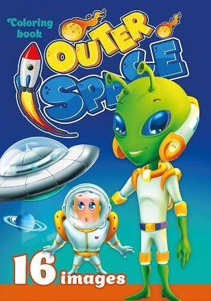 Kolorowanka dla dzieci o tematyce kosmosu. W środku znajduje się 16 obrazków nie z tej ziemi. Wyprodukowana na Ukrainie.