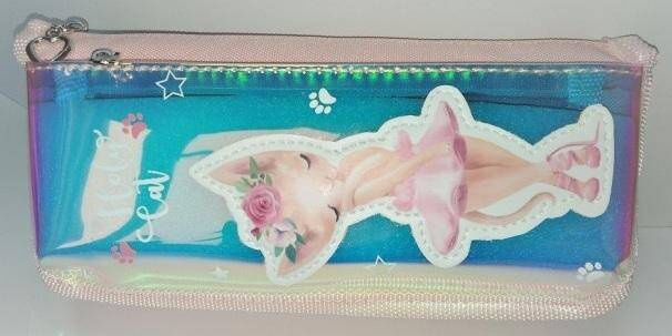 Piórnik posiada 2 komory zapinane na zamek. Mniejsza komora jest przezroczysta. Doskonale nadaje się do szkoły.