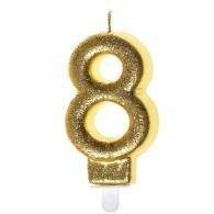 Świeczka urodzinowa, złoty brokat "8" SH-687
