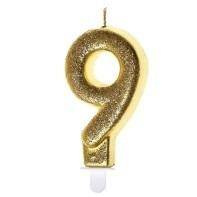 Świeczka urodzinowa, złoty brokat "9" SH-687