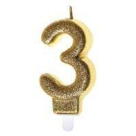 Świeczka urodzinowa, złoty brokat "3" SH-687