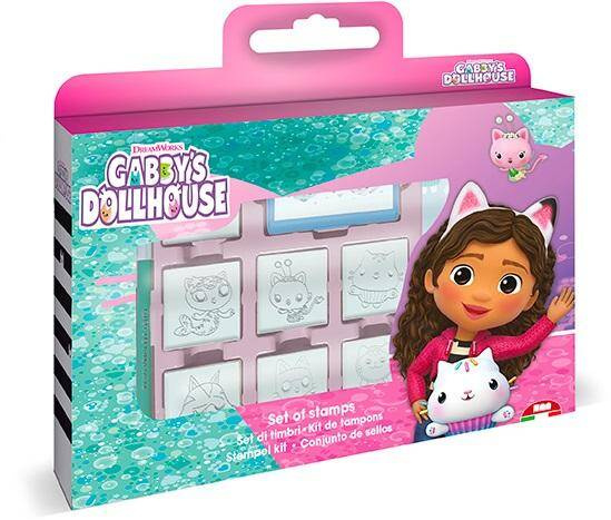 Pieczątki na licencji Koci Domek Gabi. W skład zestawu wchodzą: 7 pieczątek, 3 pisaki, 1 poduszeczka do tuszu i 1 notatnik.