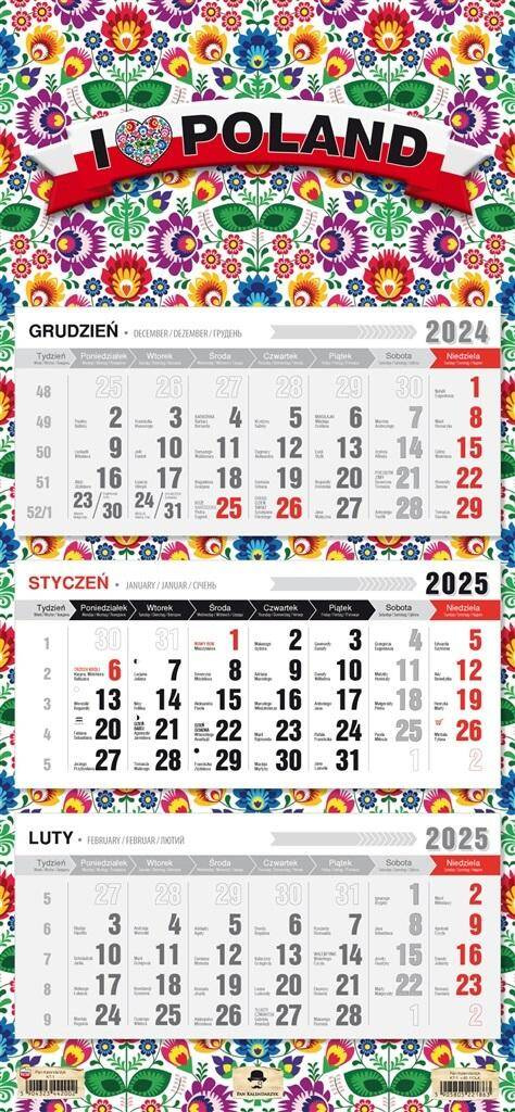 Kalendarz 2025 Trójdzielny płaska główka Folk