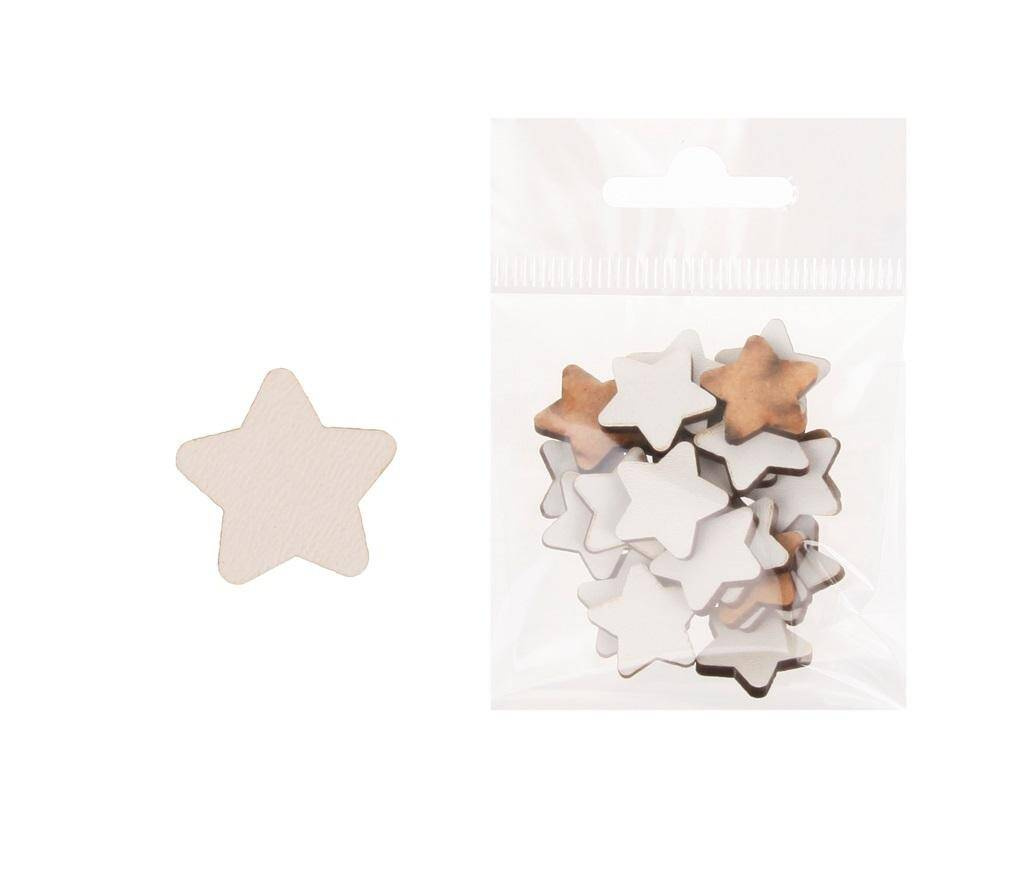 Drewniane gwiazdki jako artykuł dekoracyjny idealnie nadają się do decoupage, scrapbookingu czy jako dekoracja opakowań prezentowych, pudełek, kartek świątecznych itp. Charakteryzuje je wysoki poziom wykonania dzięki laserowej obróbce materiału. Produkt jest bezpieczny dla ludzi oraz środowiska i w pełni ekologiczny. Średnica pojedynczego elementu ok 21mm. Zapakowane w woreczek z eurowieszakiem, który zawiera 24szt średnich gwiazdek.