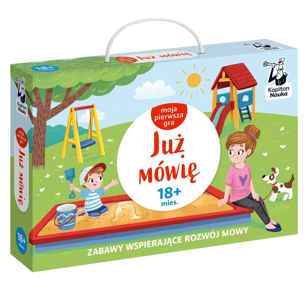 Moja pierwsza gra. Już mówię zaprasza do wspólnej zabawy rozwijającej mowę i zasób słownictwa u najmłodszych dzieci. Oglądajcie ilustracje przedstawiające najbliższe otoczenie małego Stasia i jego rodziny. Wskazujcie paluszkiem obrazki i nazywajcie je. Pokazujcie gestami czynności przedstawione na planszach. Naśladujcie związane z nimi odgłosy. Wymyślajcie historyjki oparte na scenkach przedstawionych na planszach. Za każdym razem starajcie się mówić o tych obrazkach coraz więcej, np. To jest Staś. Staś się cieszy, bo zrobił babkę z piasku. Zadawajcie dziecku pytania i odpowiadajcie na nie - w ten sposób zachęcicie je do powtarzania słów i nauki poprawnej odmiany wyrazów. Wymyślajcie zagadki dla siebie nawzajem i dajcie sobie czas na udzielenie odpowiedzi.