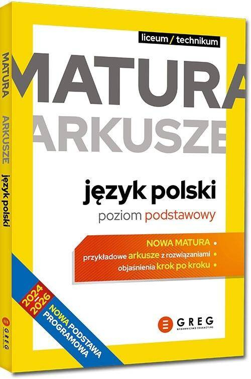 Zdaj maturę z języka polskiego bez stresu z najnowszymi arkuszami od Wydawnictwa GREG! Aktualne wydanie jest w pełni zgodne z obowiązującymi obecnie wymaganiami maturalnymi na poziomie podstawowym, więc masz gwarancję, że przećwiczysz dokładnie ten materiał, który pojawi się na maturze!