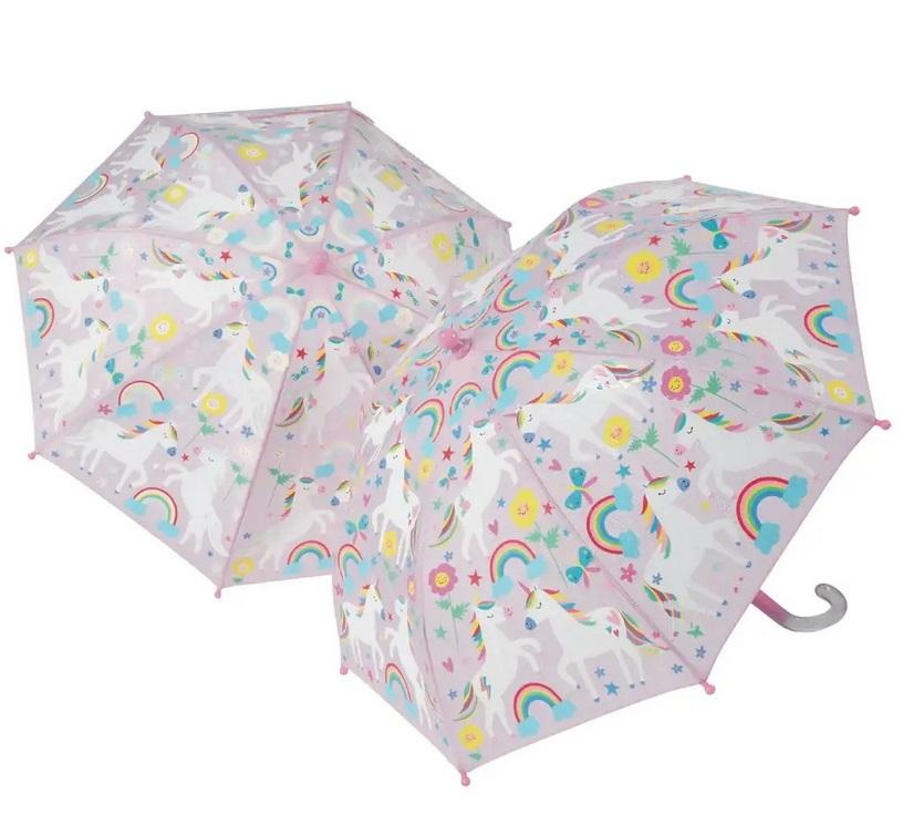 Zapewnij swojemu dziecku niezapomniane przygody podczas spacerów w deszczu dzięki magicznej parasolce zmieniającej kolory! Za każdym razem, gdy deszcz zaczyna padać, białe kształty na parasolce magicznie wypełniają się kolorowymi motywami tęczowych wróżek, rozweselając nawet najbardziej pochmurny dzień. Gdy parasolka wysycha, kolory wracają do bieli. W komplecie znajduje się wygodne zapięcie na rzep, które zabezpiecza złożoną parasolkę.