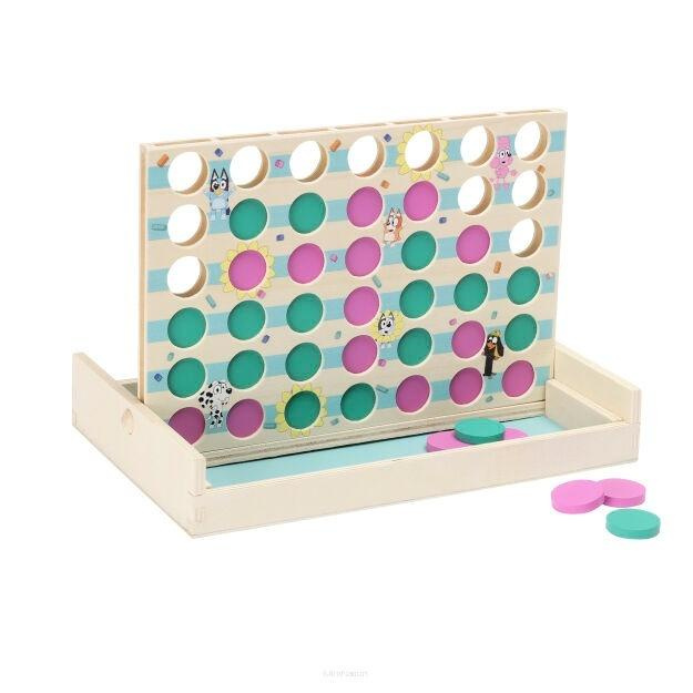 Fantastyczna drewniana gra strategiczna Cztery W Rzędzie jest idealnym źródłem rozrywki dla całej rodziny. Można ją złożyć, aby zabrać ze sobą i grać w dowolnym miejscu albo umilić sobie czas podróży. Zawiera 1 planszę, 21 różowych i 21 zielonych żetonów, miejsce do ich przechowywania oraz zasady gry. Ta zabawka rozwija motorykę małą oraz zdolność skupienia i planowania małego gracza. Gra została zaprojektowana w Szwecji i starannie wykonana z drewna pochodzącego ze zrównoważonych zasobów FSC na podstawie oryginalnych ilustracji z kochanej przez dzieci kreskówki Bluey. Zabawka jest odpowiednia dla dzieci od 3 roku życia