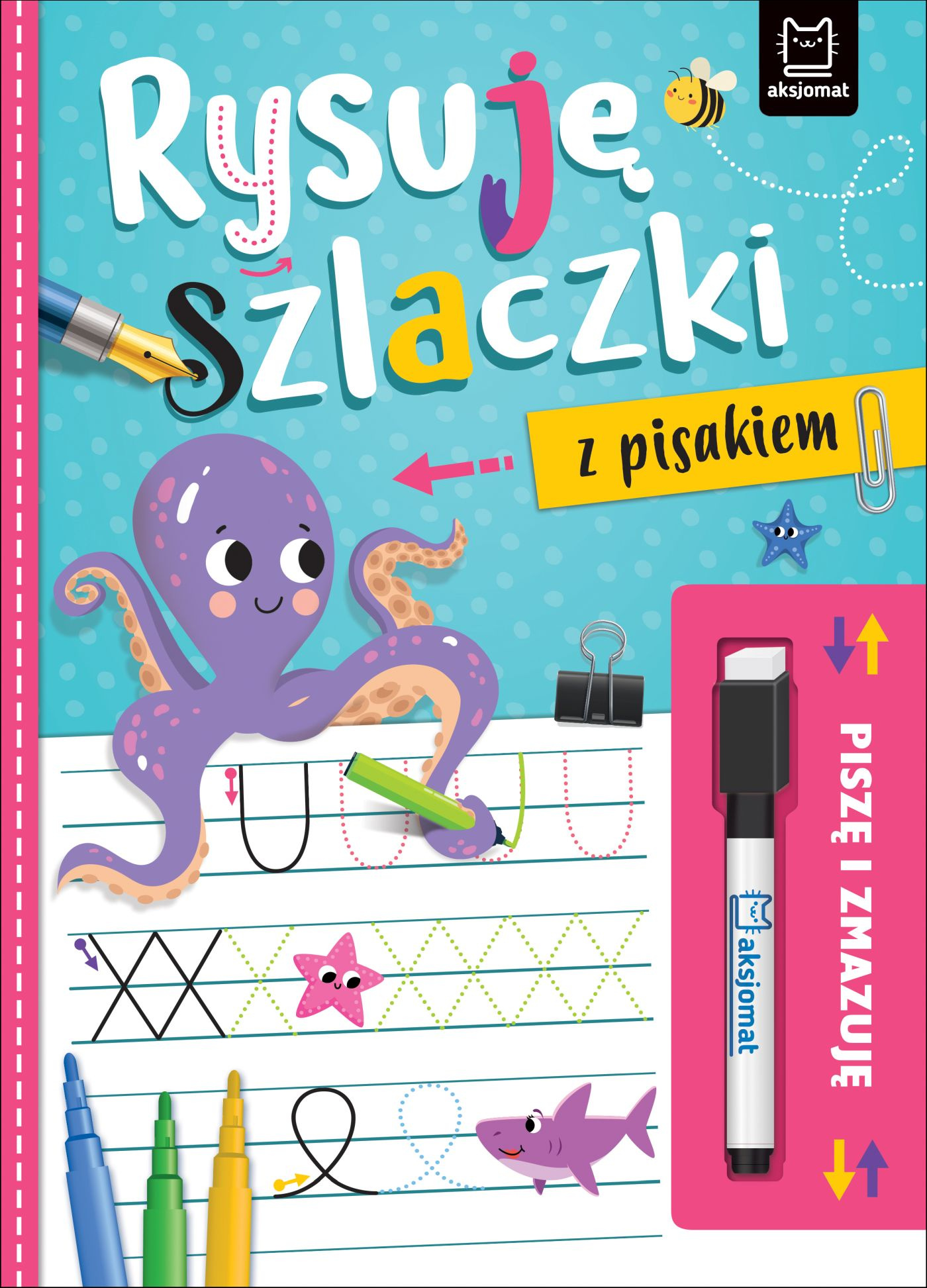 "Piszę i zmazuję. Rysuję szlaczki z pisakiem" łączy tradycyjną naukę rysowania po śladzie z zabawą suchościeralnym pisakiem. Nieudaną linię czy krzywo napisany szlaczek można łatwo usunąć i napisać jeszcze raz. Książka nadaje się do wielokrotnej nauki i zabawy.