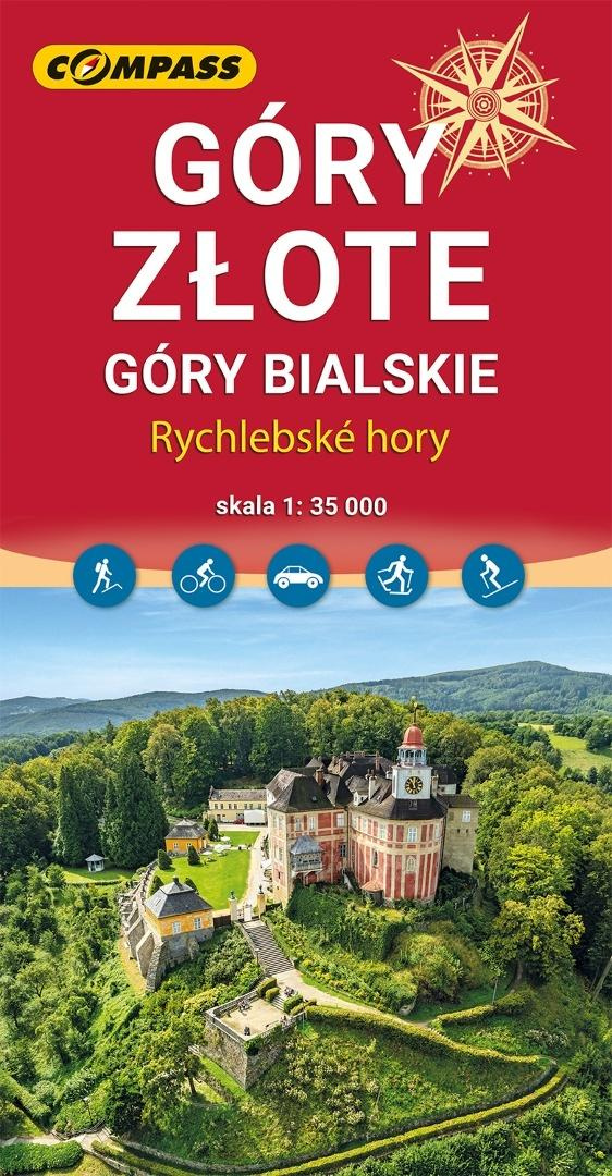 Rodzaj: mapa jednostronna z przewodnikiem turystycznym na odwrocie Skala: 1:35'000 Rok wydania: 2025 Wydanie: 5 Góry Złote - mapa turystyczna w skali 1:35'000. Mapa zasięgiem obejmuje jedno z najdłuższych pasm górskich w środkowej części Sudetów Wschodnich ciągnące się szerokim łukiem długości ok. 40 km od Przeł. Kłodzkiej (489 m n.p.m.) na północnym zachodzie do Przeł. U Trzech Granic (1 111 m n.p.m.) na południowym wschodzie. Nazwa pasma nawiązuje do złota wydobywanego przed wiekami w tych górach. Grzbietem Gór Złotych na długości ok. 32 km wiedzie granica państwowa. Po czeskiej stronie góry przyjmują nazwę Rychlebskich hor (od ruin zamku Rychleby). Zasięg mapy wyznaczają: Złoty Stok i Paczków na północy, Trzebieszowice na zachodzie, Jesenik na południu i Sławnowice na wschodzie. Na turystów czeka tu sieć pieszych szlaków górskich, które prowadzą ku najatrakcyjniejszym miejscom, jakimi są grzbiety i szczyty górskie, przełęcze, miejsca widokowe, doliny, potoki i rzeki górskie. W okolicach Złotego Stoku, Lądka-Zdroju i Stronia Śląskiego wytyczono wiele atrakcyjnych tras spacerowych i rowerowych. Na mapie zastosowano cieniowanie w celu uzyskania wrażenia plastyczności rzeźby terenu. Zaznaczono również obszary "Zanocuj w lesie". Na odwrocie znajduje się informator turystyczno-krajoznawczy o prezentowanym obszarze.