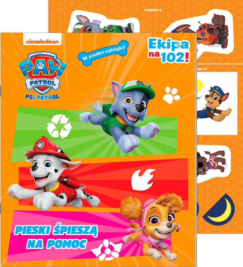 W książce Psi Patrol. Ekipa na 102! mali czytelnicy mogą cieszyć się zagadkami, łamigłówkami oraz kolorowankami ze swoimi ulubionymi bohaterami. Poprzez rozwiązywanie różnorodnych zadań dziecko może włączyć się do bohaterskiej misji dzielnych piesków i Rydera.