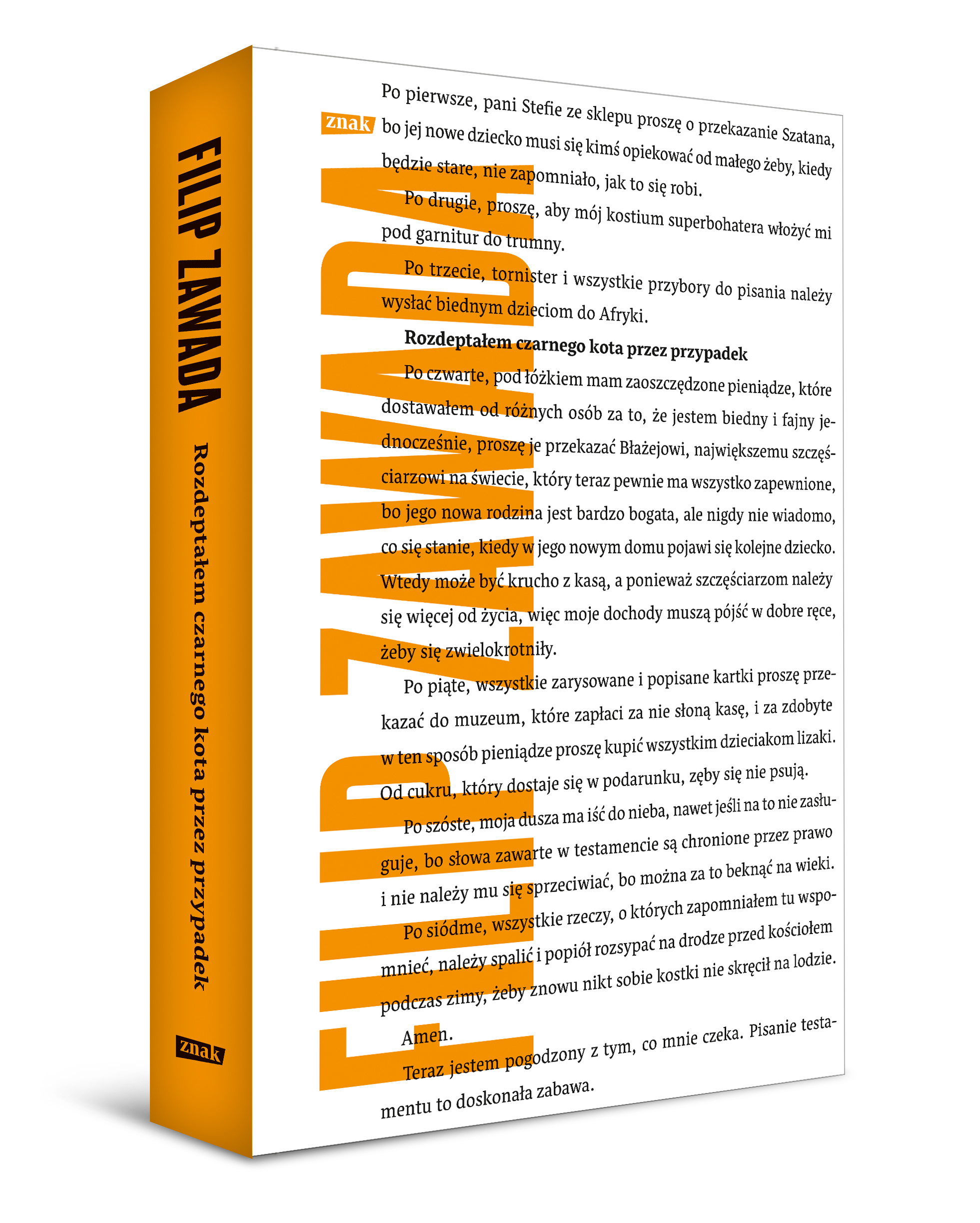 Rozdeptałem czarnego kota… to historia poszukiwania swojego miejsca na Ziemi, planecie ludzi. Świeża, błyskotliwa proza, która sprawia, że zaczynasz widzieć, jak bardzo świat z twoich wyobrażeń różni się od tego, w którym żyjesz. Z każdą stroną uświadamiasz sobie, że tę książkę Filip Zawada napisał właśnie o tobie.