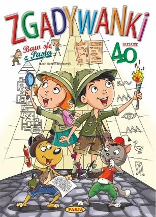 Książka edukacyjna z zadaniami logicznymi (łamigłówki, zgadywanki, zagadki), kolorowanie. Format A4, objętość 40 str. + 2 str. naklejek na papierze samoprzylepnym. Okładka miękka klejona.