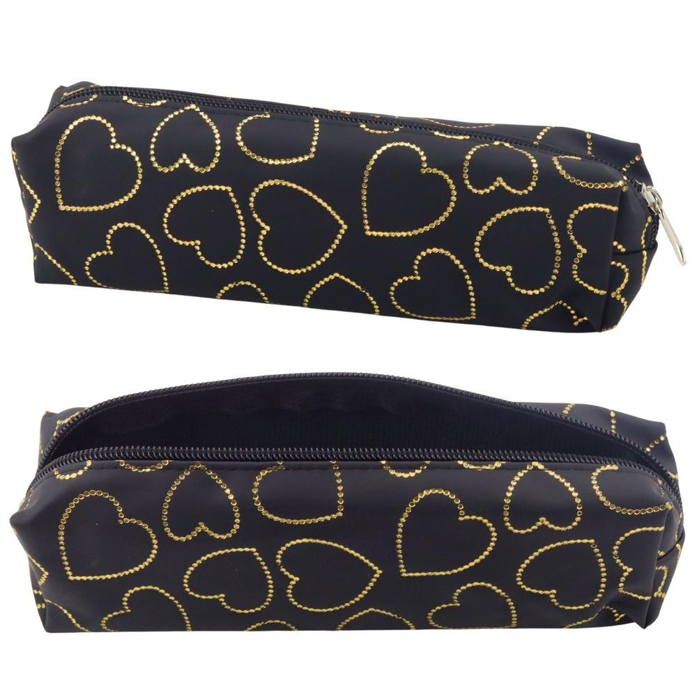 PIÓRNIK CZARNY W ZŁOTE SERDUSZKA Piórnik czarny w złote serduszka to stylowy i praktyczny dodatek, który idealnie sprawdzi się w szkole, na uczelni oraz w biurze. Jego kompaktowy format i lekka konstrukcja czynią go doskonałym wyborem do przechowywania najpotrzebniejszych przyborów piśmienniczych - takich jak długopisy, ołówki, cienkopisy czy zakreślacze. Dzięki swoim wymiarom z łatwością mieści się w plecaku, torebce lub torbie na laptopa, nie zajmując przy tym dużo miejsca. Miękka forma piórnika sprawia, że jest on wyjątkowo elastyczny i wygodny w codziennym użytkowaniu. W całości wykonany z wytrzymałego materiału, który dobrze znosi intensywne użytkowanie i jest odporny na przetarcia. Zamykanie na solidny zamek błyskawiczny pozwala bezpiecznie przechowywać zawartość i zapobiega jej wypadaniu, a jednocześnie umożliwia szybki dostęp do środka. SPECYFIKACJA: Wzór: złote serca Kolor dominujący: czarny Rodzaj piórnika: miękki, prostokątny Materiał: tworzywo sztuczne / tekstylne z połyskiem Elementy dekoracyjne: nadruk w kształcie serc, złoty kontur Zamykanie: zamek błyskawiczny Liczba komór: 1 Wnętrze: bez przegródek Wymiary: 20 x 6,5 x 4,5 cm ZAWARTOŚĆ ZESTAWU: Piórnik czarny w złote serca