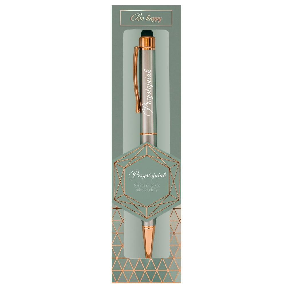 Wyjątkowy długopis prezentowy z napisem (dedykacja widoczna na zdjęciu) to doskonały sposób na okazanie wdzięczności i podarowanie praktycznego upominku. Klasyczny design w pastelowych odcieniach, wraz z subtelnym napisem sprawia, że produkt wyróżnia się elegancją i ponadczasowym stylem. Długopis wyposażony jest w funkcjonalną końcówkę typu touch pen, umożliwiającą wygodne korzystanie z urządzeń z ekranem dotykowym, co czyni go praktycznym na co dzień. Wkład w kolorze niebieskim można łatwo wymienić, dzięki czemu długopis posłuży przez długi czas. Całość zapakowana jest w eleganckie pudełko prezentowe, gotowe do wręczenia. Specyfikacja produktu: Napis: (widoczny na zdjęciu); Funkcjonalność: końcówka typu touch pen do ekranów dotykowych; Kolor wkładu: niebieski (wymienny); Opakowanie: eleganckie pudełko prezentowe; Materiał: metal