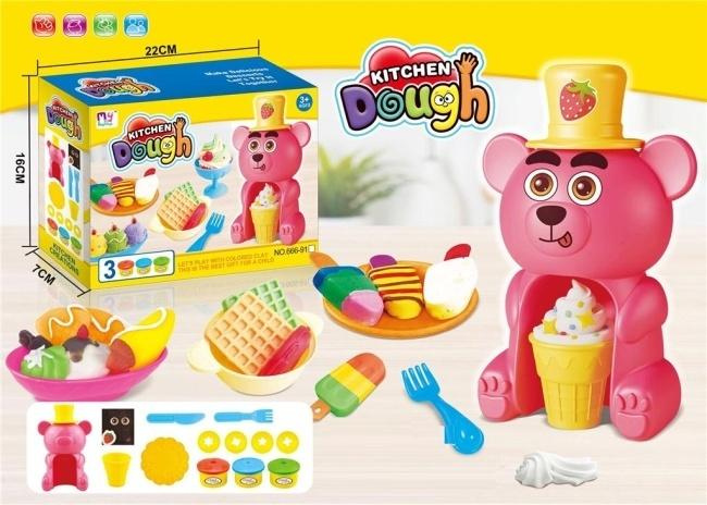 Magiczny Świat Słodkich Kreacji z Zestawem Ciastoliny "Słodki Niedźwiadek" Zapraszamy do fascynującej zabawy z kreatywnym zestawem ciastoliny "Słodki Niedźwiadek"! Ten wyjątkowy zestaw przeniesie Twoje dziecko w świat wyobraźni i pozwoli mu tworzyć kolorowe desery, które wyglądają jak prawdziwe. Głównym elementem jest interaktywna maszynka do wyciskania ciastoliny w kształcie uroczego, różowego niedźwiadka w czapce z truskawką. Wystarczy umieścić ciastolinę wewnątrz i nacisnąć, aby uzyskać realistycznie wyglądające lody w wafelku lub inne fantazyjne kształty. Zestaw zawiera różnokolorową ciastolinę, foremkę do gofrów, talerzyk, sztućce oraz inne akcesoria, które urozmaicą zabawę. Dziecko może tworzyć kolorowe lody, apetyczne gofry, soczyste owoce i wiele innych słodkości, rozwijając przy tym swoją kreatywność i zdolności manualne. "Słodki Niedźwiadek" to nie tylko świetna zabawa, ale także doskonały sposób na rozwijanie wyobraźni przestrzennej, koordynacji wzrokowo-ruchowej oraz umiejętności planowania i tworzenia. Bezpieczna i nietoksyczna ciastolina zapewnia beztroską zabawę na długie godziny. Ten uroczy zestaw to idealny prezent dla każdego małego artysty i miłośnika słodkości. Zapakowany w kolorowe pudełko, z pewnością wywoła uśmiech na twarzy dziecka. Zachęcamy do odkrycia nieskończonych możliwości kreatywnej zabawy z zestawem ciastoliny "Słodki Niedźwiadek"!