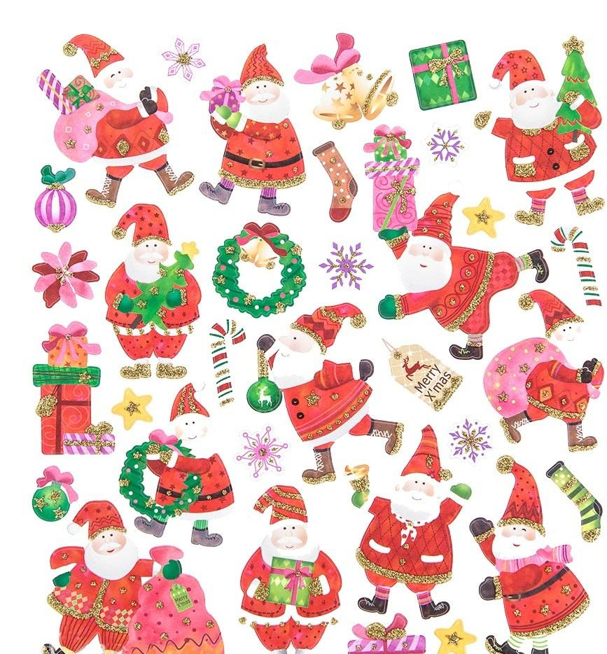 Połyskujące naklejki "Mikołaje" z brokatem doskonale nadają się do wszelkiego rodzaju dziecięcej aktywności twórczej, jak również do zdobienia projektów kreatywnych, takich jak kartki okolicznościowe, albumy, pudełka, opakowania prezentów i wielu innych.