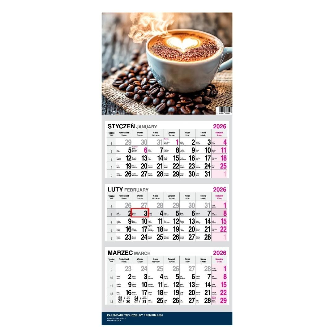 Kalendarz 2026 Trójdzielny Twarda Główka Kawa