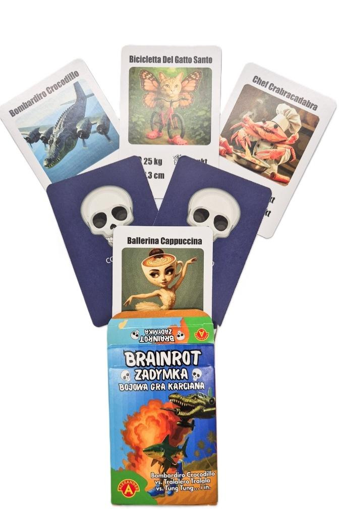 Masz ochotę na szybką, śmieszną i totalnie szaloną grę, która rozkręci każdą przerwę, domówkę albo wieczór z rodzeństwem? Brainrot: Zadymka to gra karciana, w której liczy się spryt, memiczna moc i odrobina absurdu. Zbierasz karty, porównujesz cechy i wygrywasz, jeśli masz silniejsze albo bardziej odjechane postacie niż reszta!