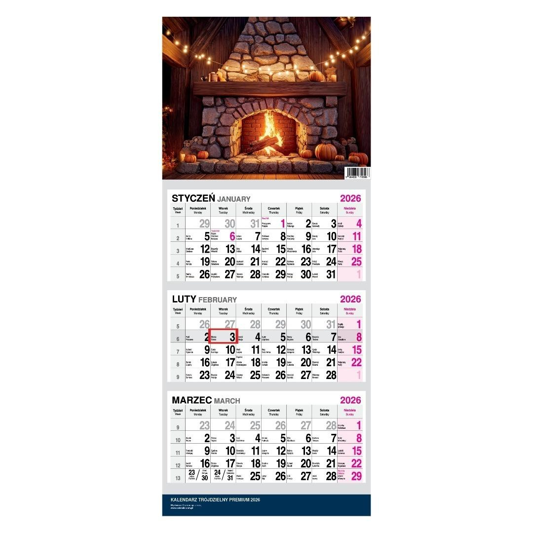 Kalendarz 2026 Trójdzielny Twarda Główka Kominek