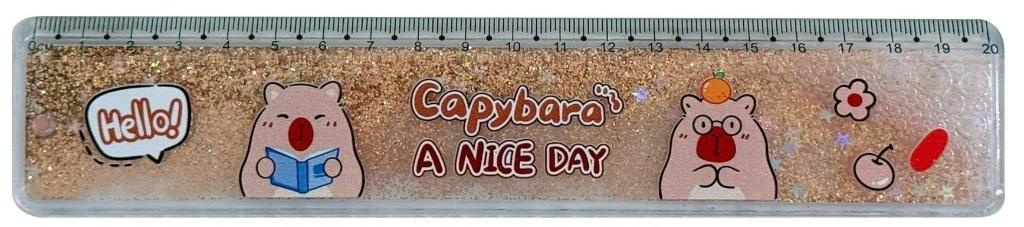 Linijka z wodą i brokatem Kapibara złota 20cm