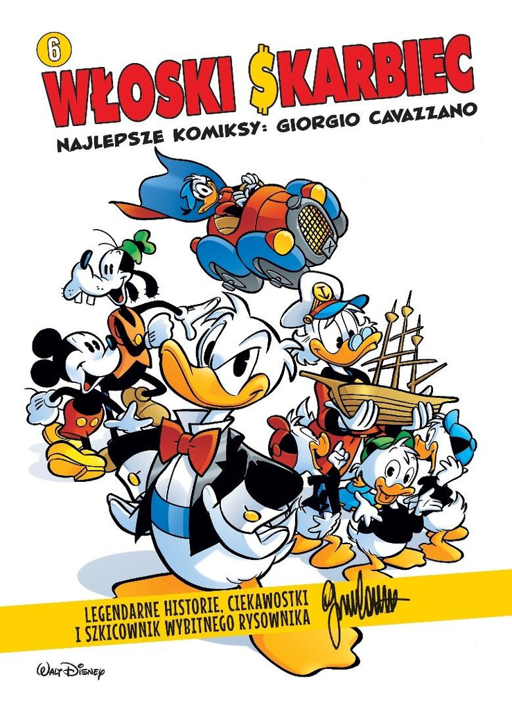 "Włoski Skarbiec" to kolekcja komiksów stworzonych przez najsłynniejszych włoskich rysowników Disneya. Każdy tom wzbogacają teksty krytyczne oraz "Szkicownik" z ciekawostkami i rzadkimi oryginalnymi rysunkami pochodzącymi z warsztatu artysty. Szósty tom poświęcony twórczości Cavazzana obejmuje komiksy stosunkowo niedawne, w tym "Wyspę Srebra", ostatnią historię zmarłego weneckiego scenarzysty Rodolfa Cimina. Wszystkie zawarte tu opowieści to triumf komedii i humoru. Wśród nich znajduje się historia uznana przez włoskich czytelników za najlepszą w dziejach magazynu "Topolino", a także pierwsza narysowana przez mistrza przygoda tajnego agenta Donalda - DoubleDucka. Jest tu też surrealistyczne arcydzieło, w którym Miki, Goofy i Donald pojawiają się w świecie Salvadora Dalego, sportretowanego u boku Walta Disneya. "Szkicownik" prezentuje między innymi ilustracje wykorzystane w serii znaczków pocztowych z okazji dziewięćdziesięciolecia kariery Myszki Miki.