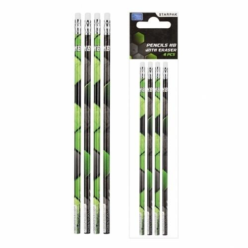 Ołówek nie łamie się podczas strugania, a gumka nie brudzi, ołówki to podstawowy produkt podczas nauki w szkole (rysowanie, matematyka, pisanie), łatwe w struganiu, nie łamią się, nie brudzą, uniwersalna twardość HB, każdy ołówek wyposażony w gumkę do mazania. Zestaw 4 ołówków z gumką z kolekcji STARPAK z grafiką z Football. Każdy ołówek zdobiony kolorową grafiką. Wykonany z trwałego drewna, zapewnia komfort rysowania i pisania. Służy nie tylko do rysowania i szkicowania, ale jest również niezbędny podczas lekcji matematyki, do nauki pisania, do robienia notatek na marginesach książek lub zeszytów. Dlatego tak ważna jest jego jakość. Dzięki wysokiej jakości grafit nie sypie się, nie brudzi i nie kruszy. Twardość HB sprawia, że ołówki STARPAK są uniwersalne i mogą być wykorzystywane zarówno do pisania, jak tez rysowania. Zapoznaj się również z innymi produktami STARPAK z serii Football! Zawartość opakowania: 4 szt. ołówków z gumką. Wykonane z odpornego, nie łamiącego się podczas strugania grafitu. Wymiary/waga: wymiary produktu (dł.)[cm]: 19 cm, wymiary opakowania (wys. x szer. x gł.)[cm]: 25x5x1, waga produktu bez opakowania 1szt.[kg]: 0,01 kg, waga produktu w opakowaniu [kg]: 0,02 kg. Produkt przeznaczony dla dzieci w wieku: 3+. Ołówki pakowane w folijkę z zawieszką.