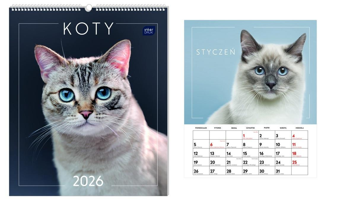 Kalendarz 2026 ścienny planszowy 33,5x40cm Koty