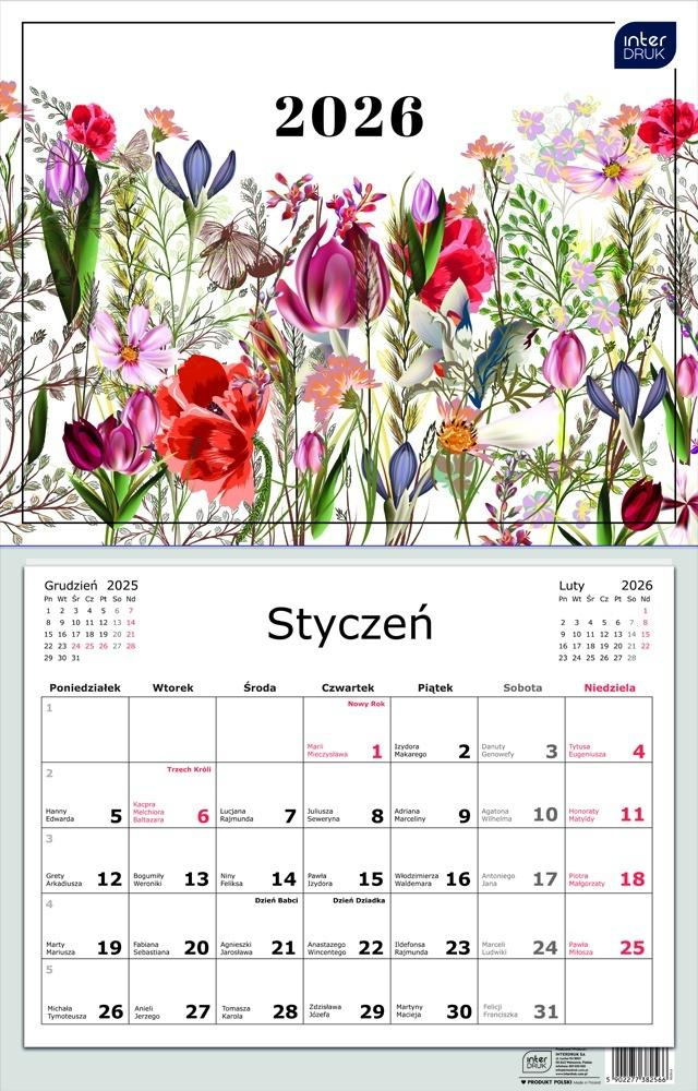 Kalendarz 2026 jednodzielny 32x50cm Kwiaty