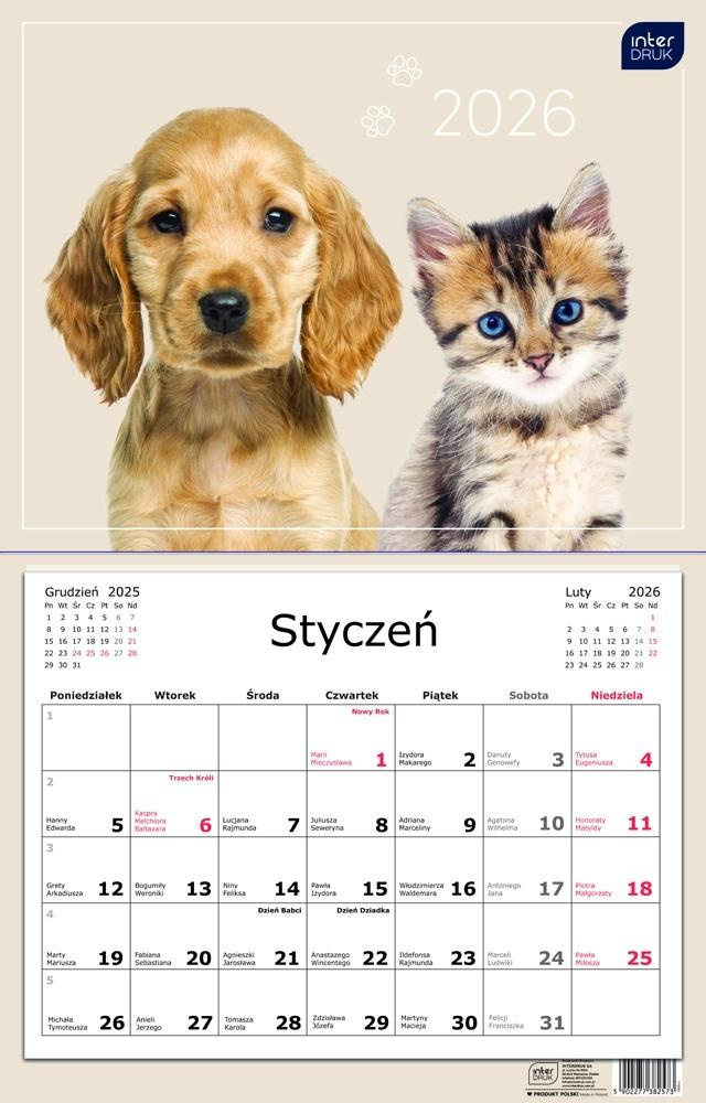 Kalendarz 2026 jednodzielny 32x50cm Zwierzaki