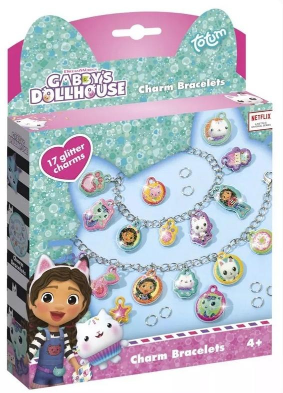 Zróbdwie super urocze bransoletkiz charmsami z Gabi i innymi mieszkańcami domku. Dzięki34wypukłym naklejkomz łatwością stworzysz własną wesołą bransoletkę z mieniącymi siębrokatowymi drobinkami.Jedną dla siebie, a drugą dla najlepszej przyjaciółki