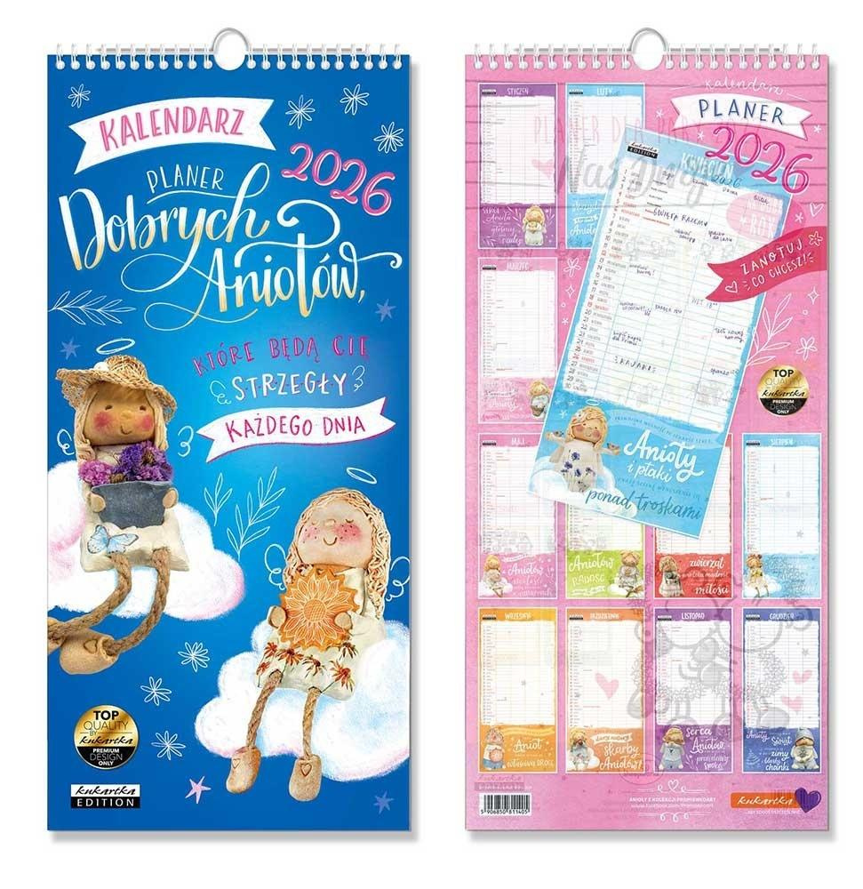Podłużny kalendarz ścienny na rok 2026 z serii "Dobre anioły"