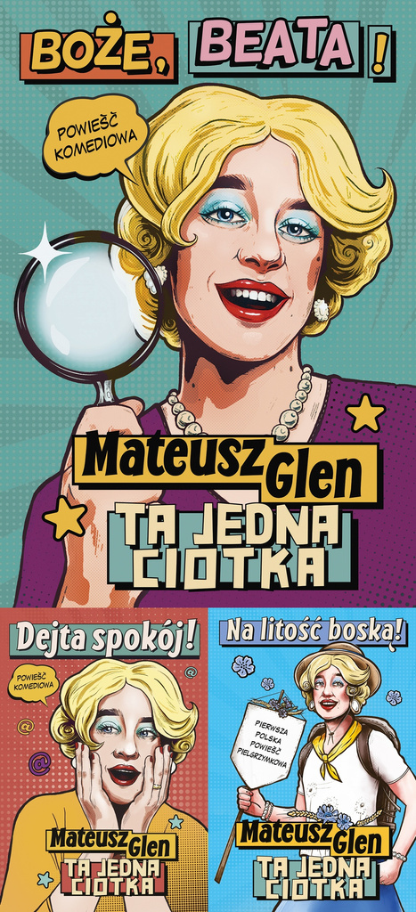 Mateusz Glen - Mój znak zodiaku to bliźnięta, więc prędzej czy później moja druga twarz musiała się pokazać. Od zawsze miałem smykałkę do naśladowania, grania, parodiowania i występowania. Pewnie dlatego skończyłem jako "chłop przebrany za babę", czyli TA JEDNA CIOTKA. Myśleliście, że skończę na dwóch książkach? Co to, to nie!