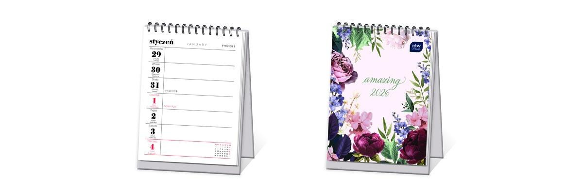 Kalendarz 2026 biurkowy tygodniowy Kwiaty