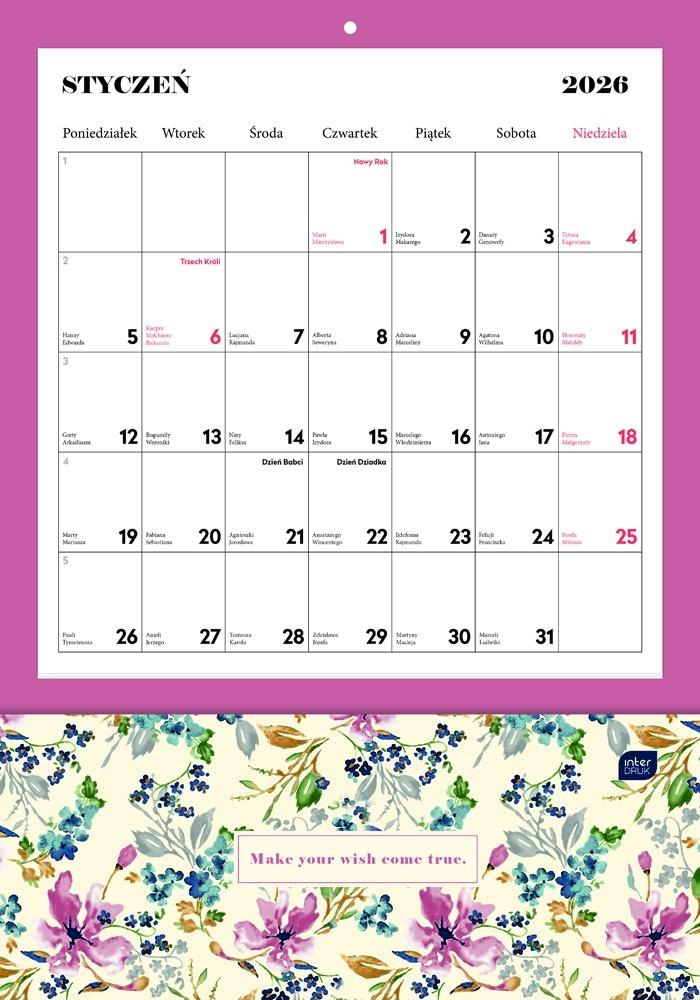 Kalendarz 2026 ścienny z kieszonką 28x40cm Blossom