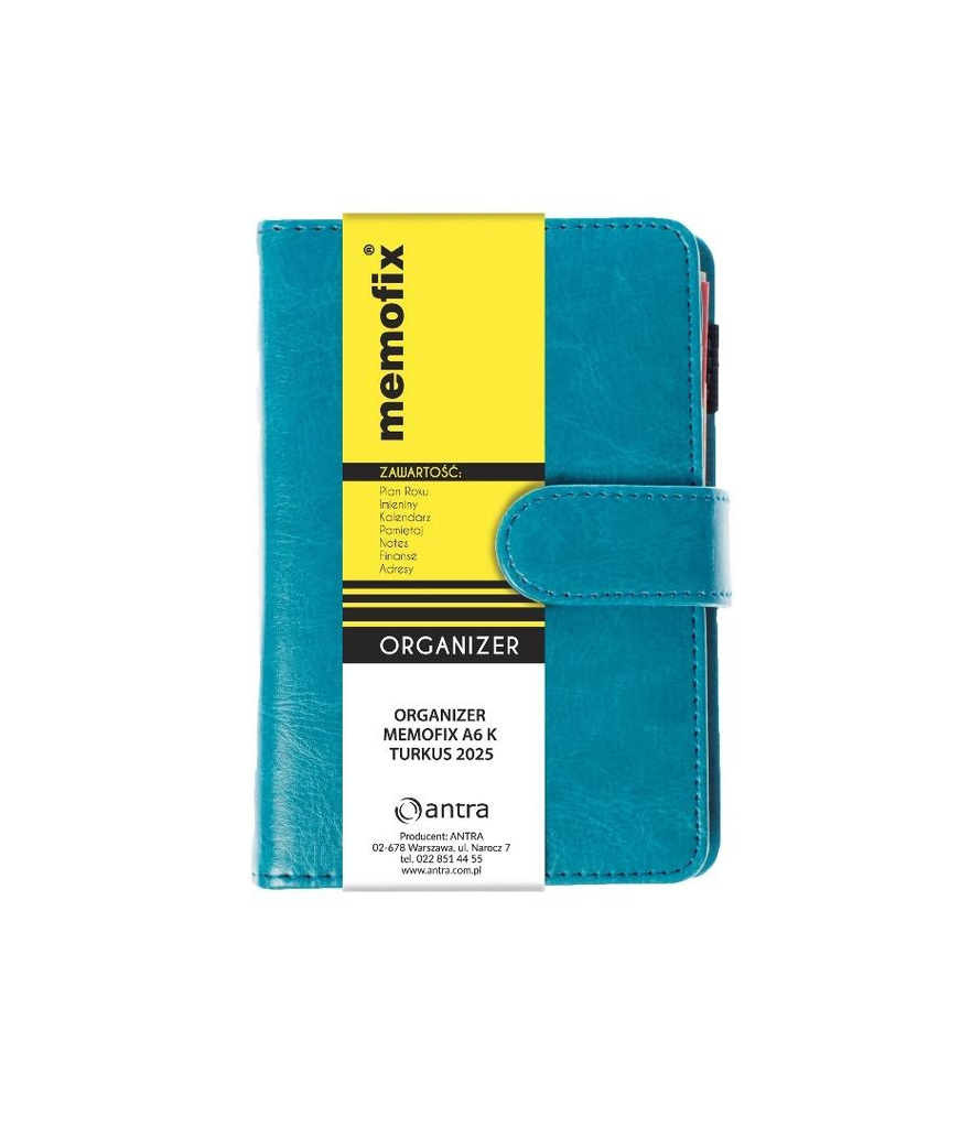 Organizer posiada: wkład kalendarzowy 2026, pamiętaj, notes, finanse, adresy